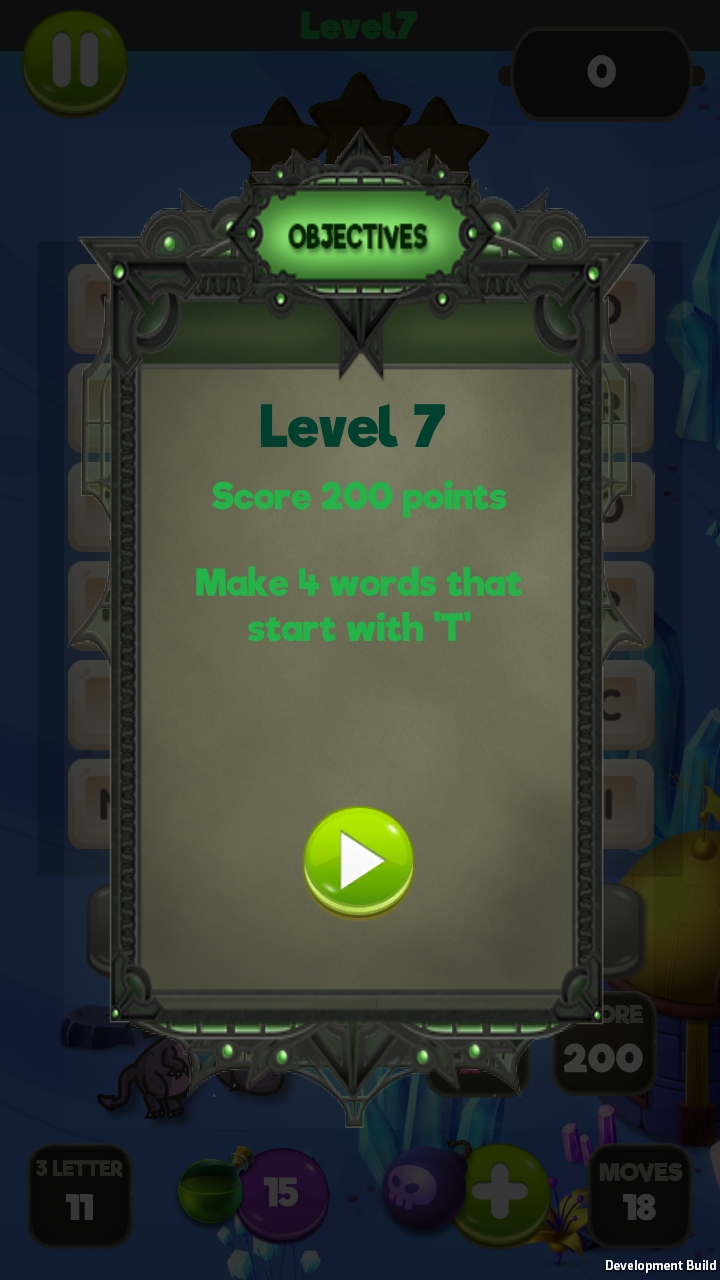 Each level has unique objectives. This is shown at the start of the level and can be viewed in level by selecting the pause button. Objectives are also shown at the bottom of the screen. Each level also has a maximum number of words allowable to complete it. Objectives may inlcude: